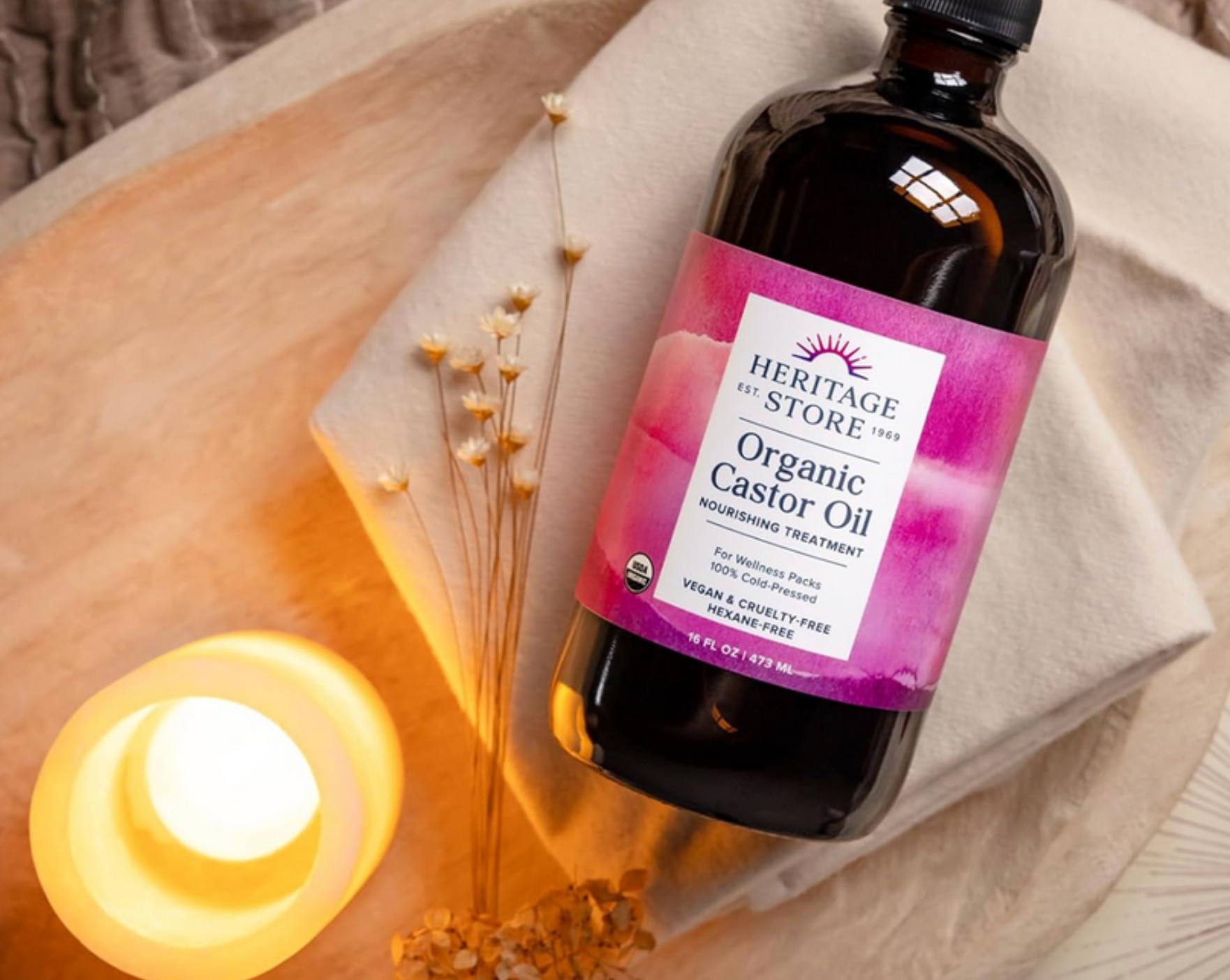 Castor oil contains ricinoleic acid, a powerful healing compound that penetrates deeply into tissues and promotes circulation, drainage, and